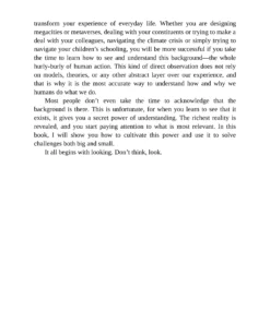 In Look, Madsbjerg sets out the key observational skills needed to show how we can recapture our ability to pay attention. Drawing from philosophy, science, the visual arts, and his own life, he offers both practical insights and a range of tools for experiencing the world with greater richness and texture. The result is a dynamic approach to rethinking observation that helps all of us to see with more empathy, accuracy, and connection to others.