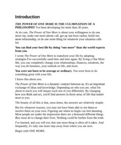 Perfect for anyone who wants more bliss, wealth, or better relationships, The Power of One More is an indispensable roadmap to realizing and exceeding your personal and professional goals by tapping into the superpowers and gifts you already have inside you.