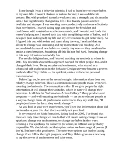 BJ FOGG is here to change your life—and revolutionize how we think about human behavior. Based on twenty years of research and Fogg’s experience coaching more than 40,000 people, Tiny Habits cracks the code of habit formation. With breakthrough discoveries in every chapter, you’ll learn the simplest proven ways to transform your life. Fogg shows you how to feel good about your successes instead of bad about your failures.